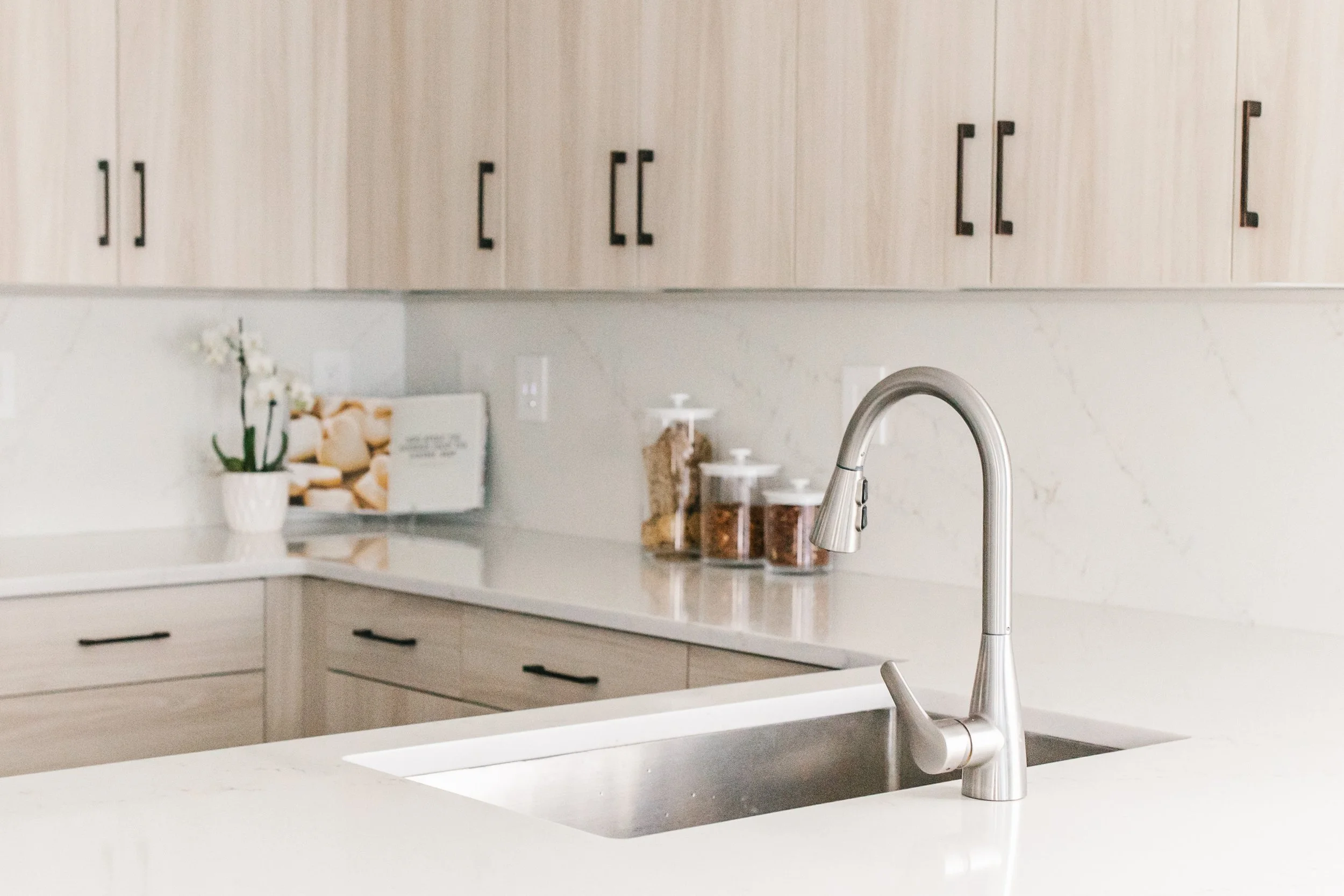 CABINETS, QUARTZ, MARBLE AND GRANITE COUNTERTOPS AND LVP FLOORING.